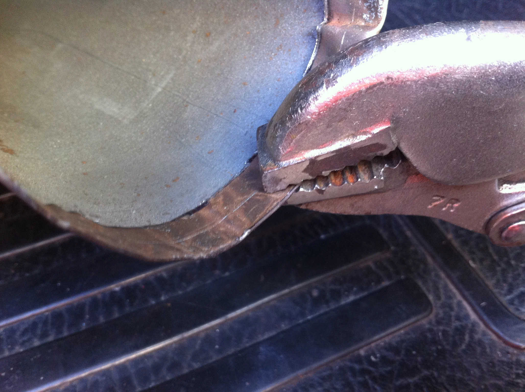 At this point, I use the pliers again to carefully flatten out the tab working slowly around the entire edge. This first pass is done lightly to take out the larger waves.